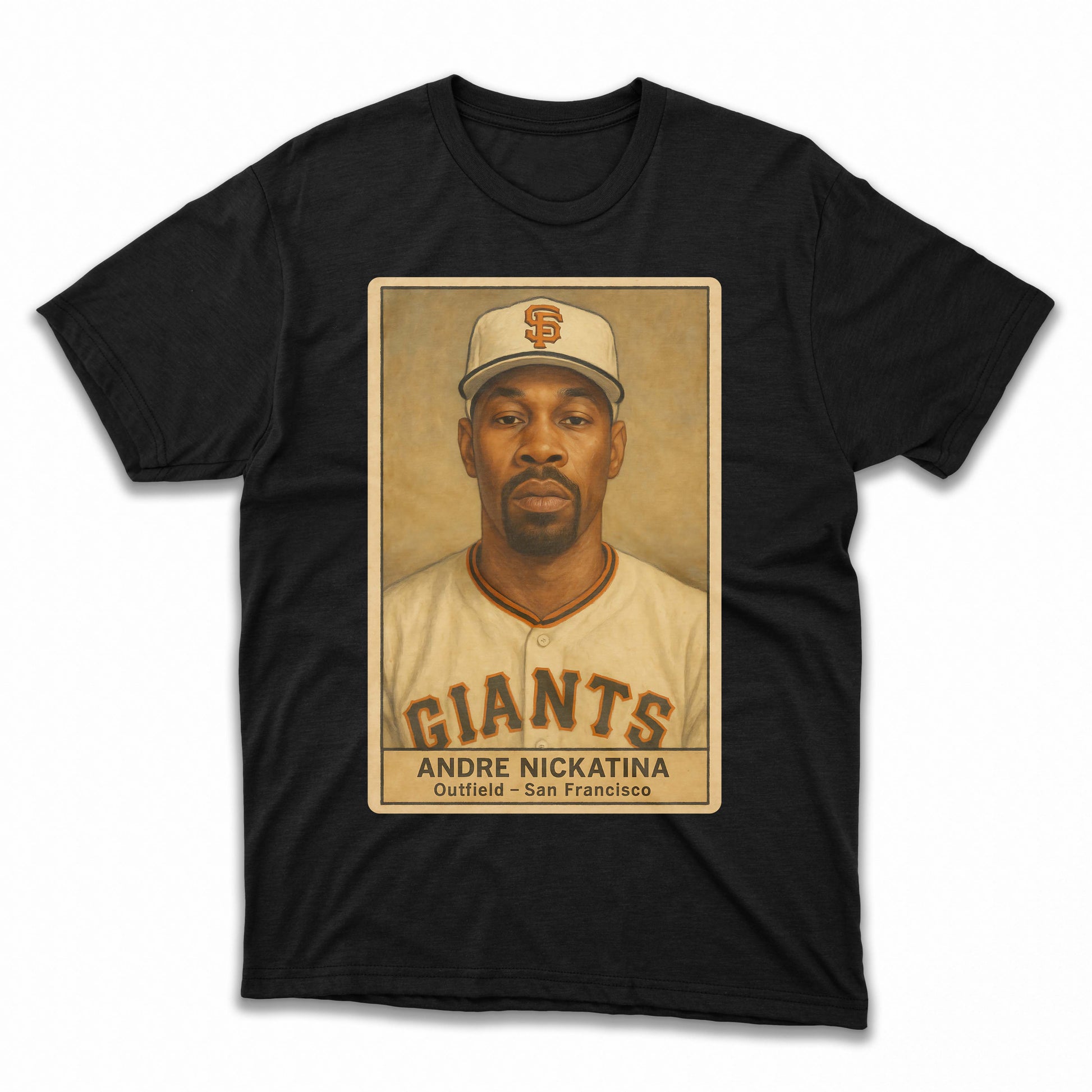 Designed for sports card collectors, vintage lovers, and 90s-raised Bay Area kids, this shirt blends bold style with local pride. Featuring custom graphics inspired by Sports Card Grails and Bay Area Rap Icon Andre Nickatina.